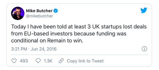 It’s not clear yet if European workers and, indeed students, will have to leave and when but London’s tech sector certainly relies on their work.