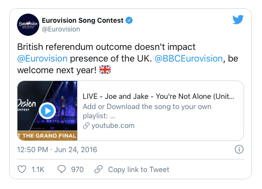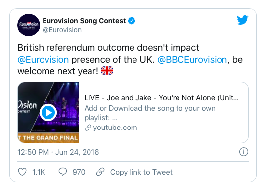 A very sad day for many, although, take comfort in the fact we can still compete in Eurovision.