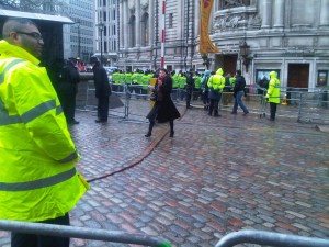 The Metropolitan Police declined to comment on how much the policing of Blair’s Second Coming had cost. But a helpful Met Police Officer who had been drafted in for the day said that just outside the building there were more than 150 officers- four higher ranking officer per patrol of 21. You do the maths.