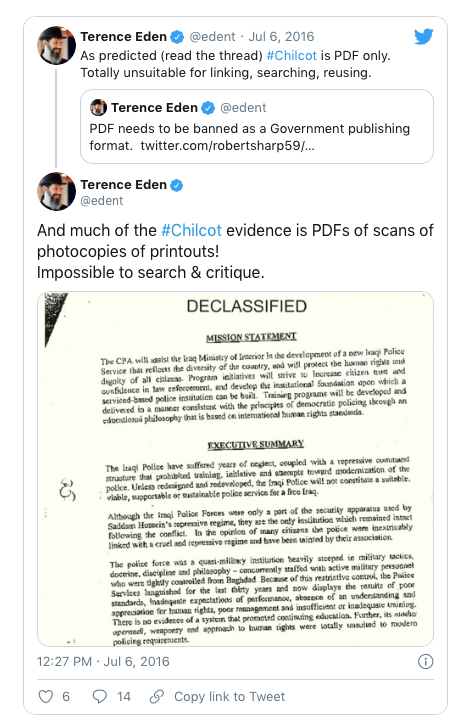 Turns out, my old mate has been working away for years on Chilcot, not only trying to convince the Inquiry to offer better access to the files, but also trying to work out how to crowdsource efforts to open up the documents.